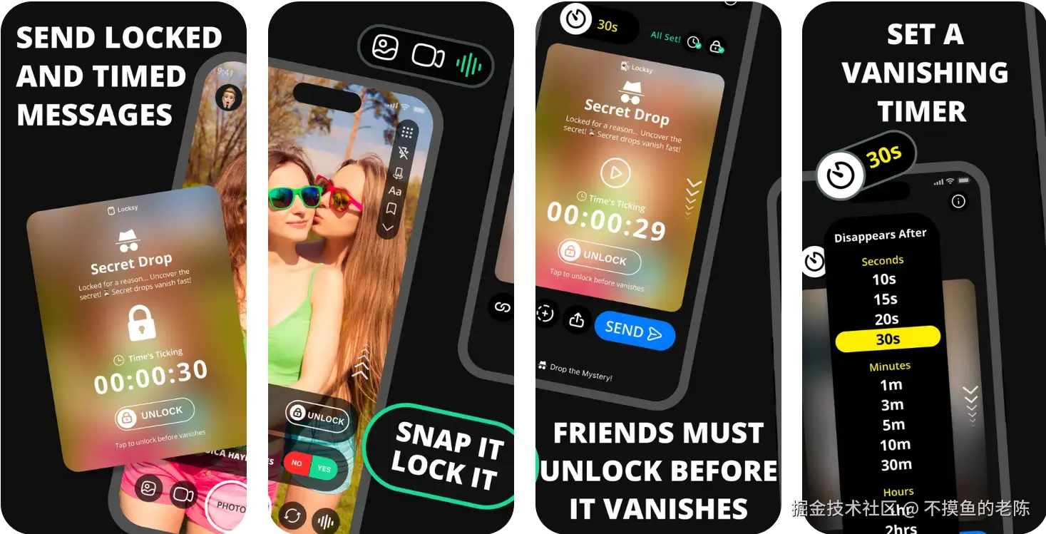 Locksy是一款iOS应用,允许用户拍照并设置定时发送。