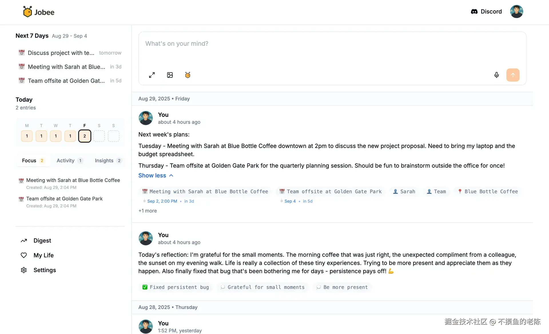 Jobee是一款个人生活助手和笔记工具,快速记录想法、自动提取目标和任务,并构建个人生活地图。