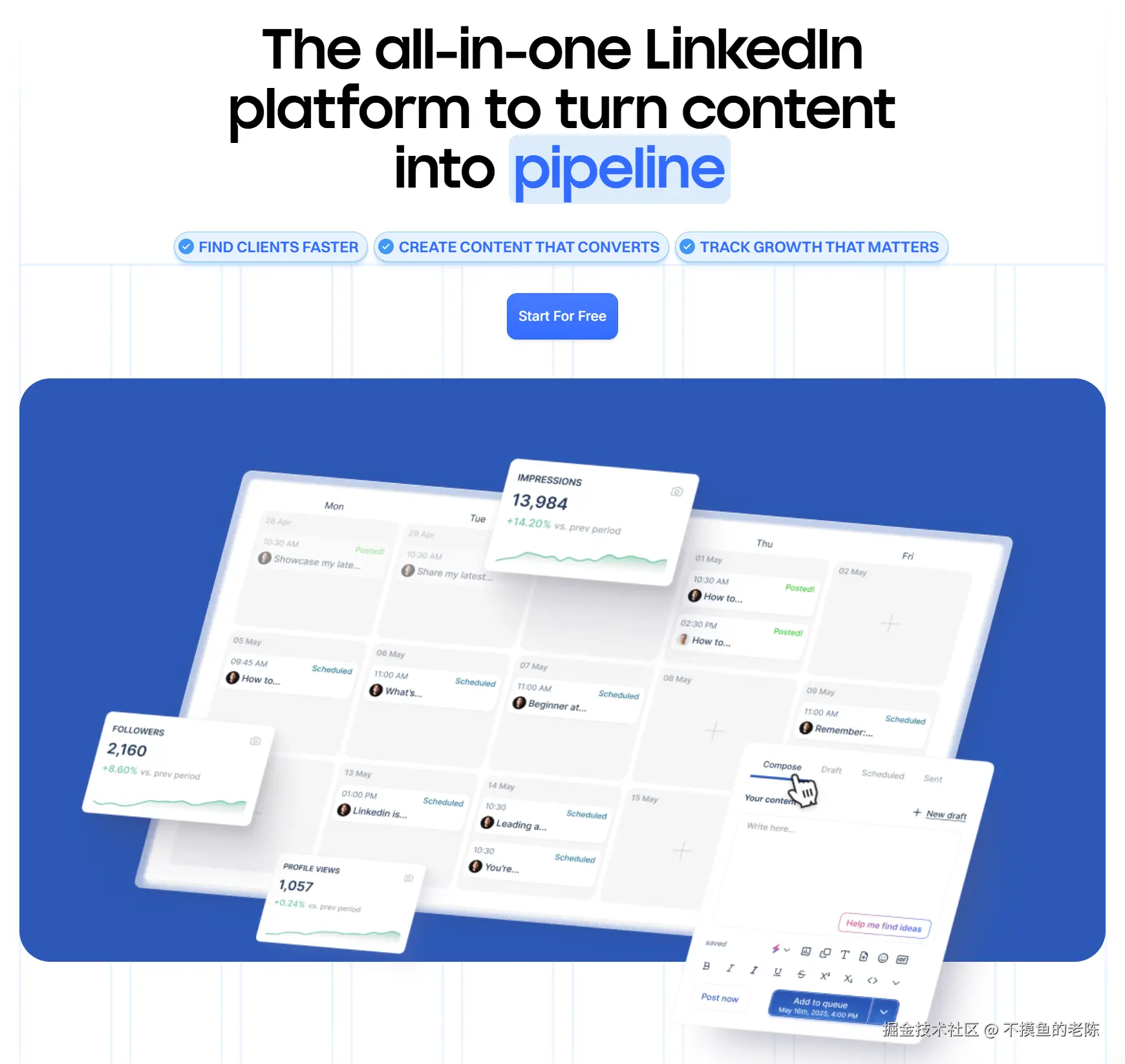 Taplio是一款帮助用户高效创建LinkedIn帖子的应用,提供内容建议和AI写作功能,显著节省时间并提升参与度。