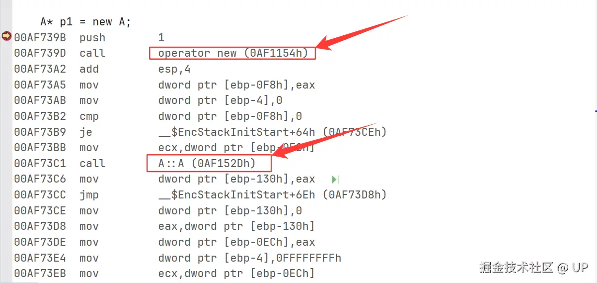 new [N]申请N个连续的自定义类型时,会调用N次operator new;并且,如果显示实现了析构函数,编译器还会自动在申请的内存前面额外申请4个字节,用于存放数字N,如果没有显示实现,则不会记录;这样为了在delete时,记录需要调用析构函数多少次;