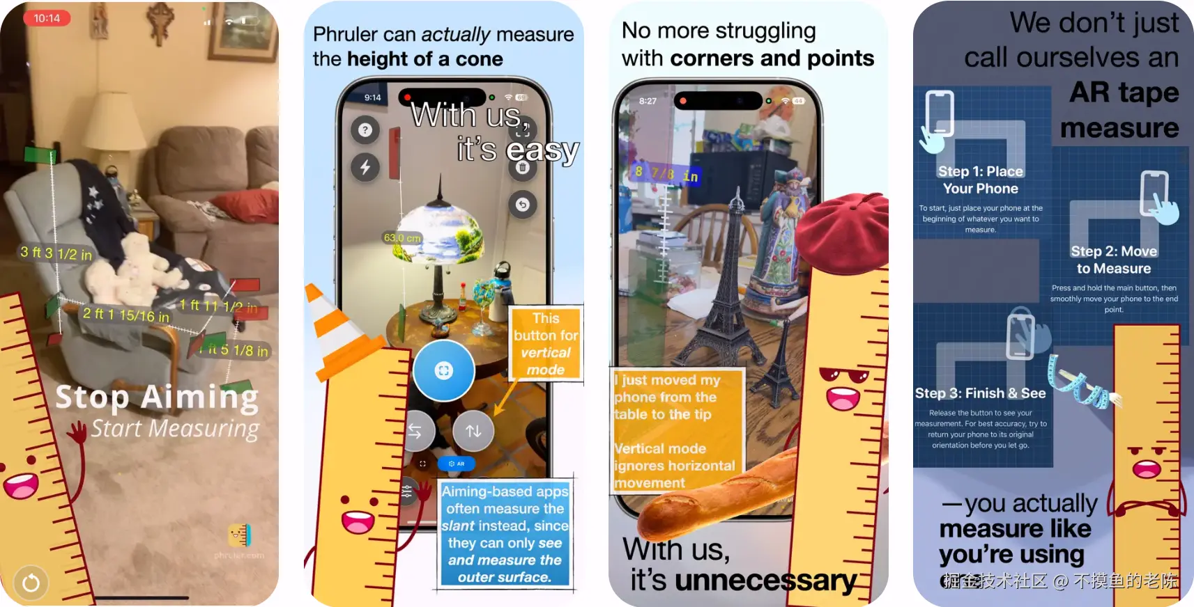 Phruler是一款AR测量应用,通过追踪手机在3D空间中的位移来精准测量距离,解决了传统AR工具在尖锐物体或视线受阻时的测量问题。