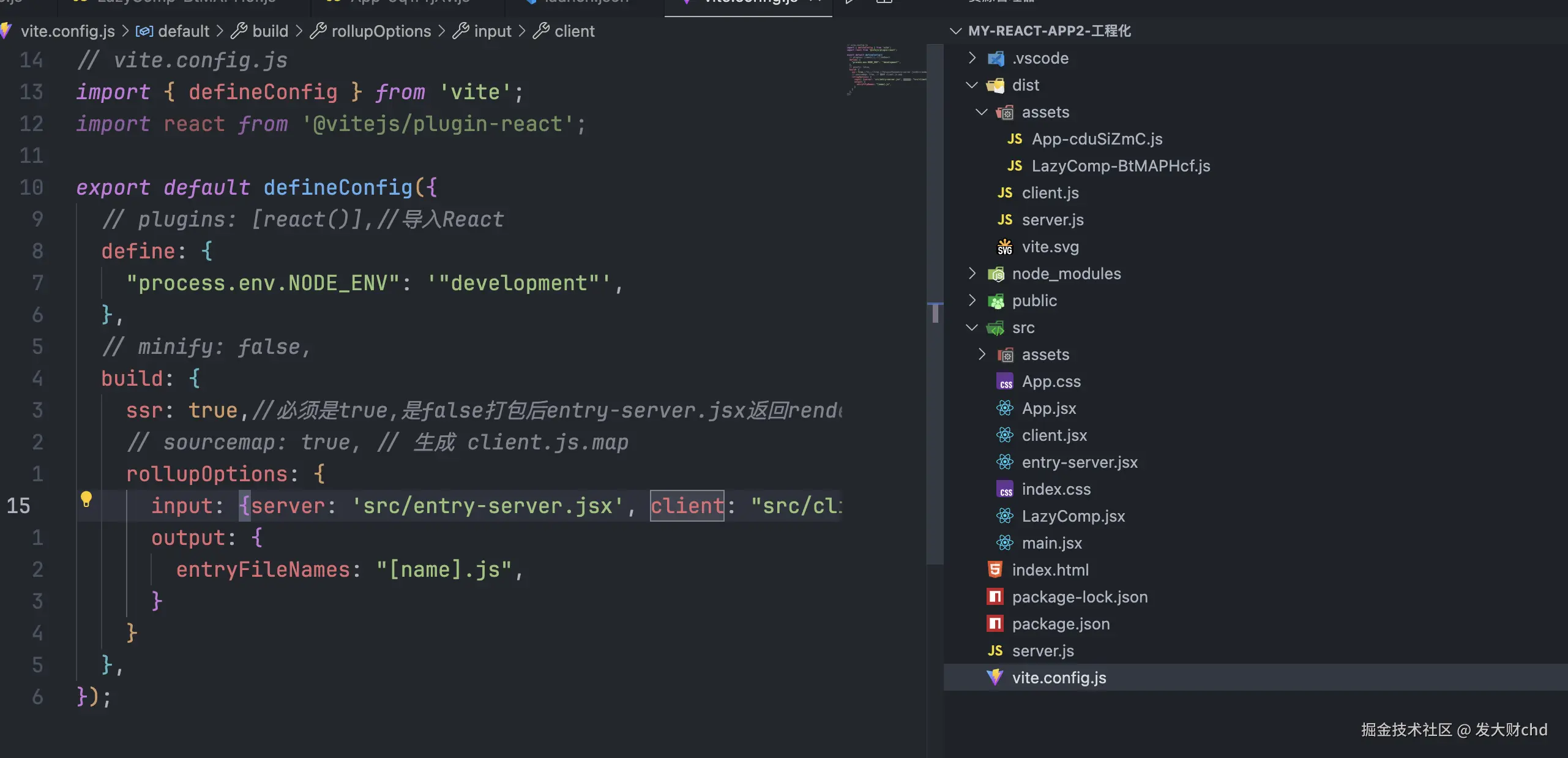 │ │ └── server.js ← 这个在 Node 跑,不会发给客户端 打包前是entry-server.jsx