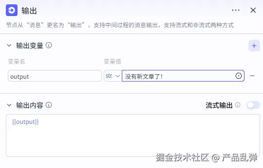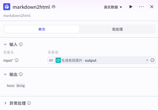将中间变量 url_middle1 设置为合并输出后的 output。6、MarkDown转HTML