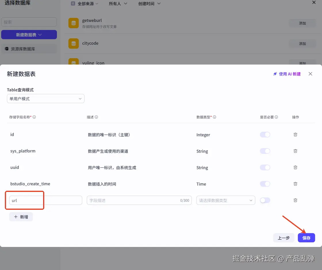 若走到此节点,说明改写文章已完成,需将该链接存入已改写数据库中,防止重复改写。添加【新增数据】,将最初获取到的可改写文章的 url 存入数据库中。
