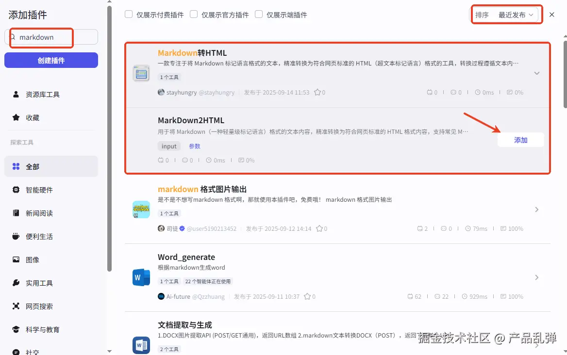 【重点】本步骤也是重点!!!由于大模型生成的内容为MarkDown格式,不兼容公众号,因此需要改为HTML。我试了市场里的免费插件,效果都不好,总有解析不对的地方,于是自己做了一个插件,测试效果还行,没有遇到问题。如何获取插件