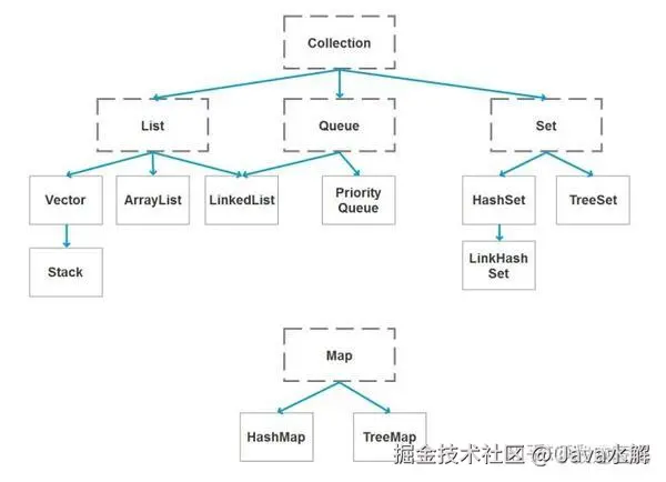 - java.util.Collection 是一个集合接口(集合类的一个顶级接口)。它提供了对集合对象进行基本操作的通用接口方法。Collection 接口在 Java 类库中有很多具体的实现。Collection 接口的意义是为各种具体的集合提供了最大化的统一操作方式,其直接继承接口有 List 与 Set。