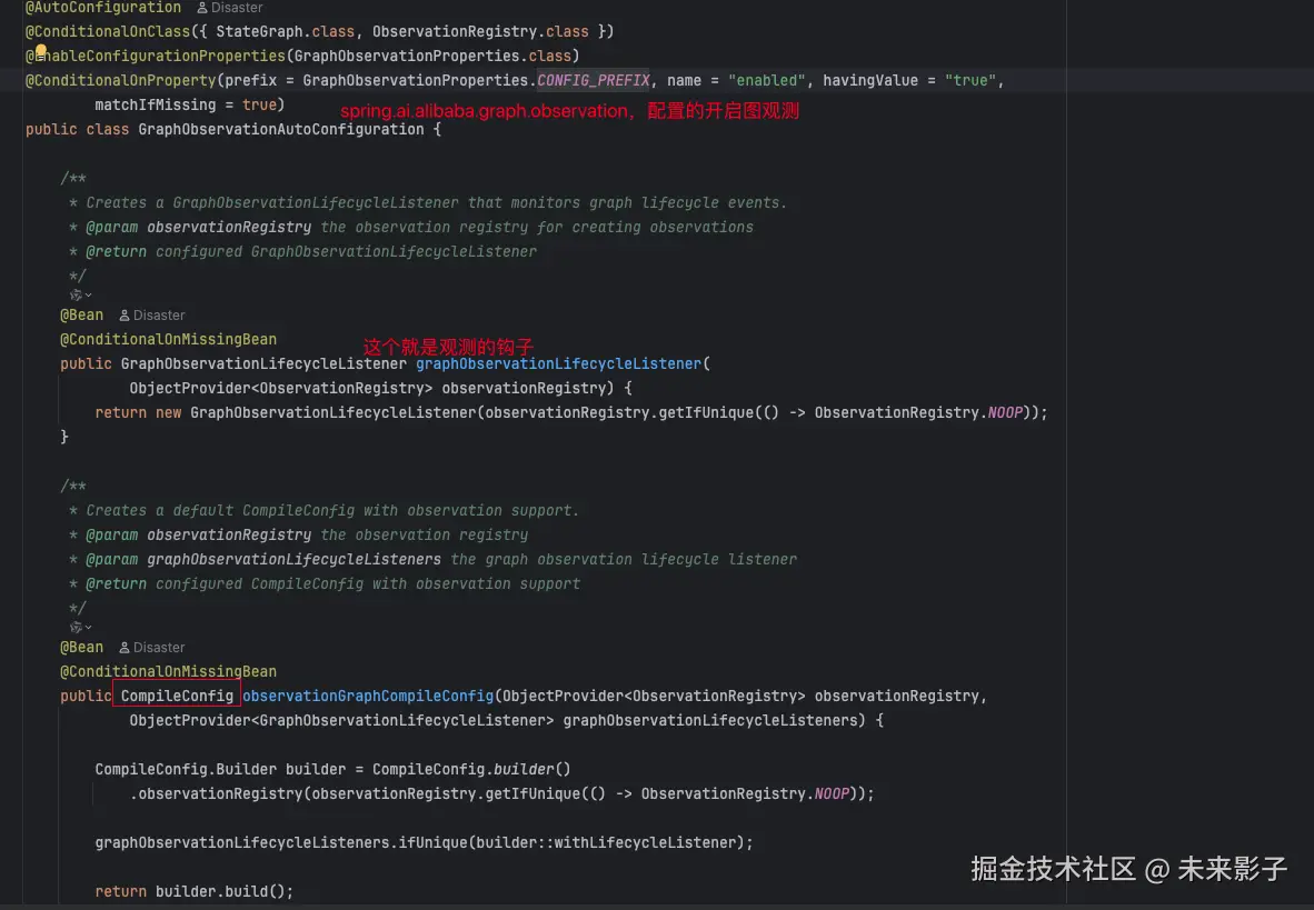 这里 CompileConfig observationCompileConfig 带了观测信息,可以定位到 GraphObservationAutoConfiguration 自动注入类