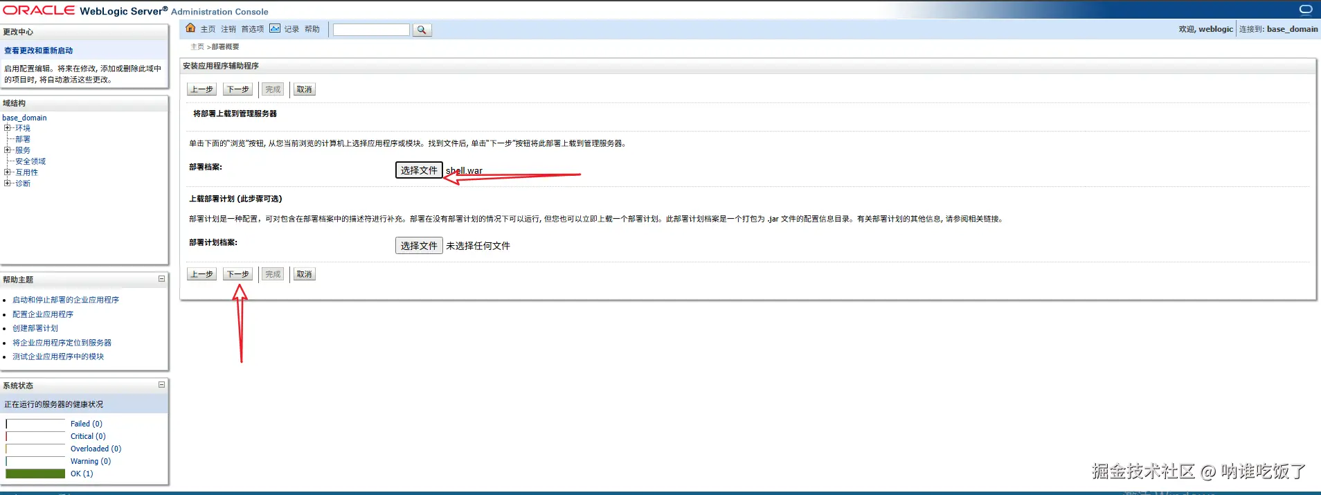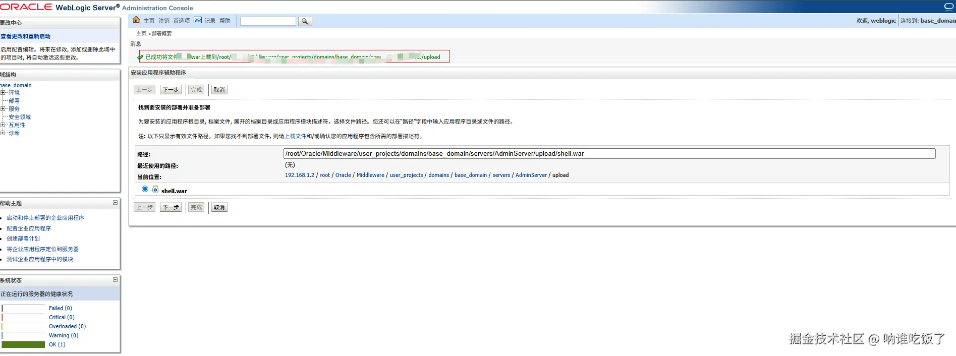 将制作好的war包上传,也是使用自带的war包()