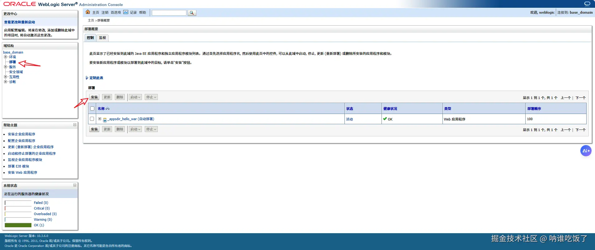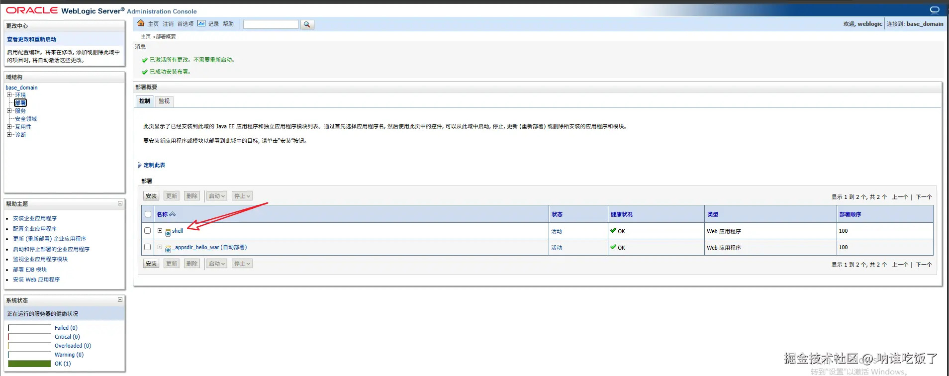获取管理员凭据后,登录管理控制台。点击左侧导航栏中的"部署"查看应用列表: