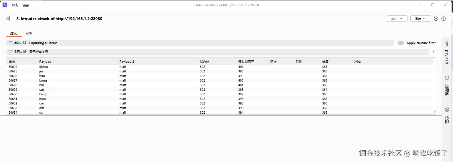 使用intruder模块: