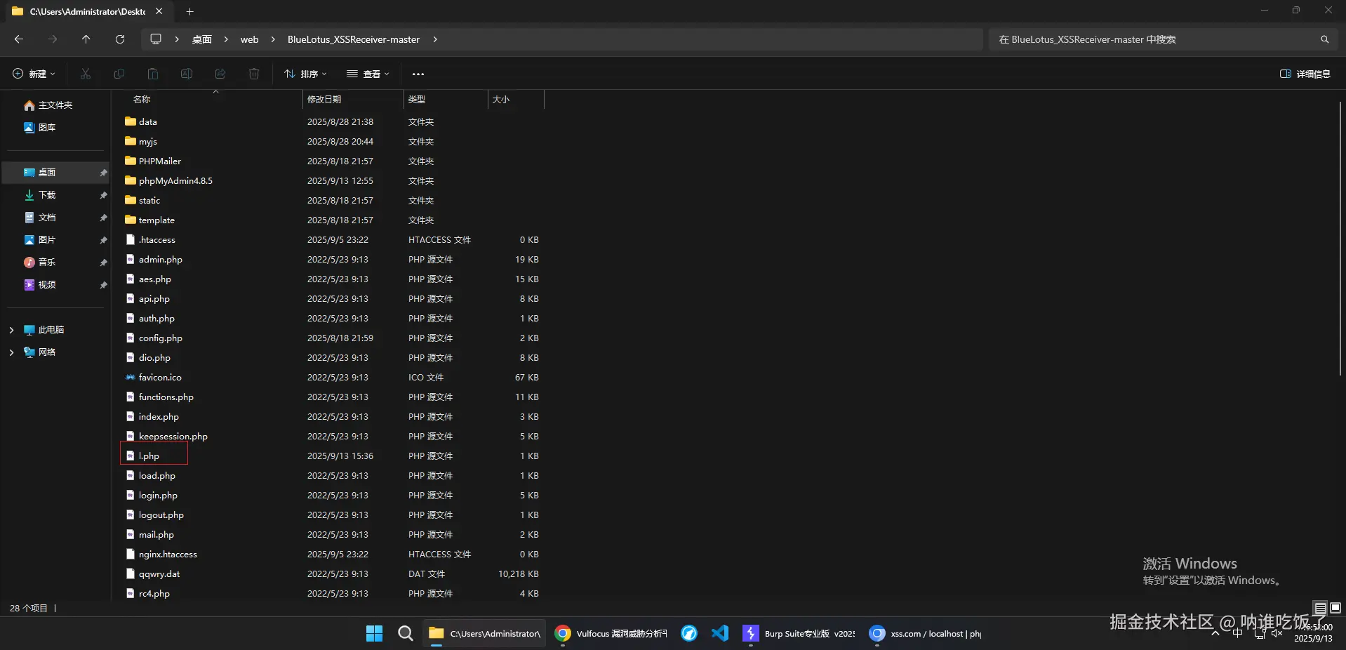 返回网站目录查看l.php: