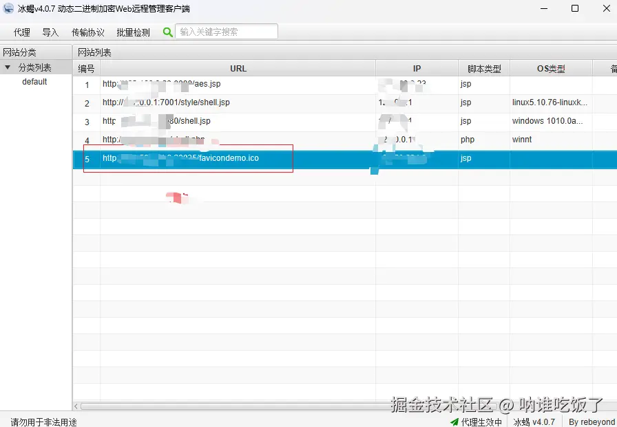 打开冰蝎并配置参数: