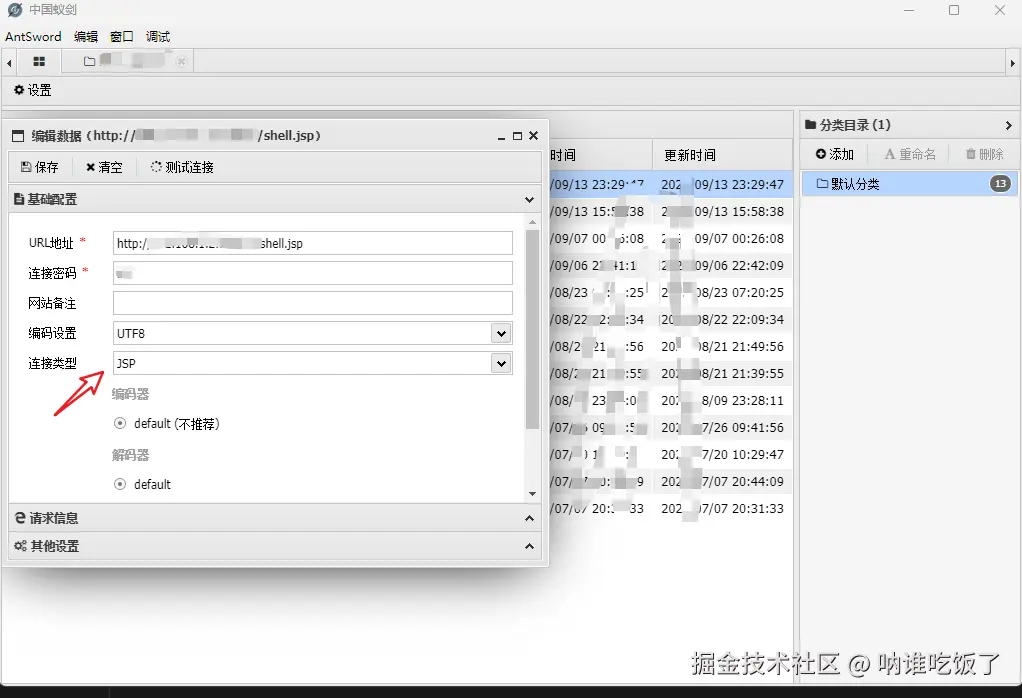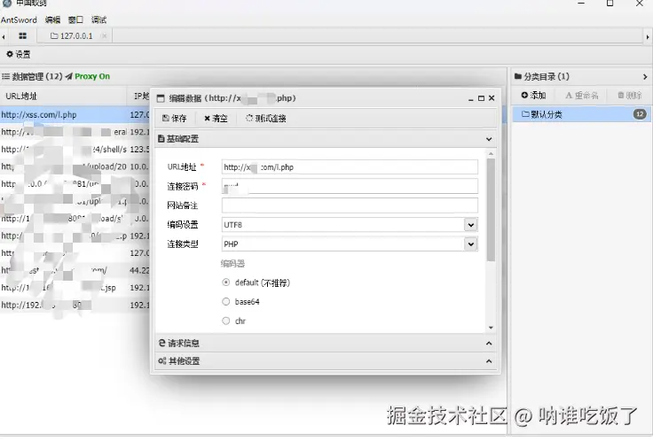 使用蚁剑链接:
