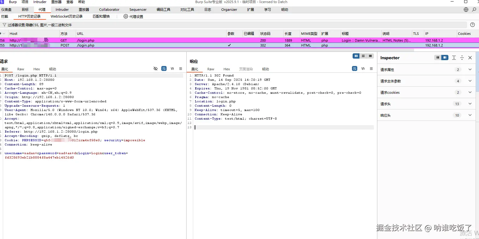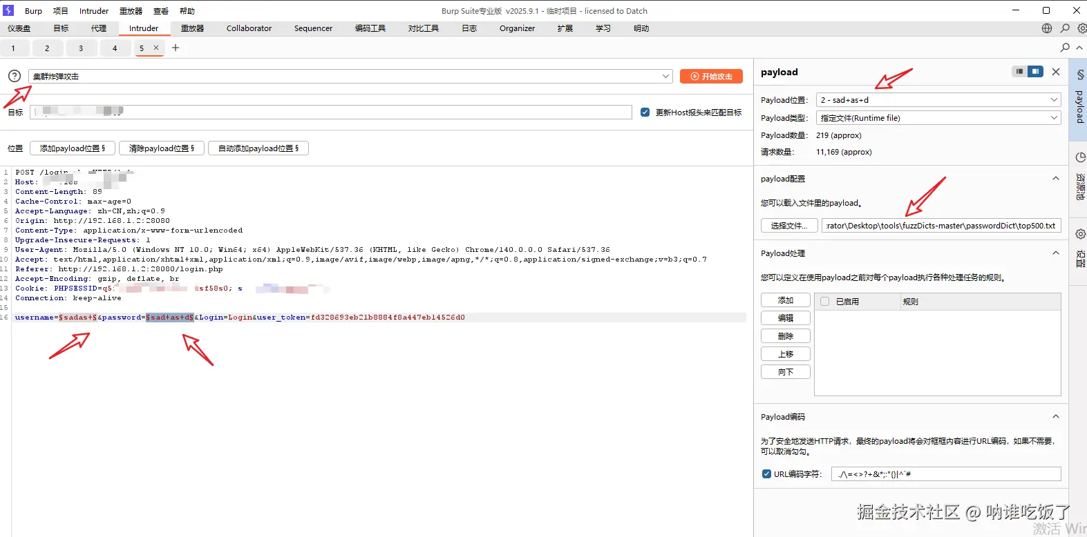 使用Burp爆破弱口令:
