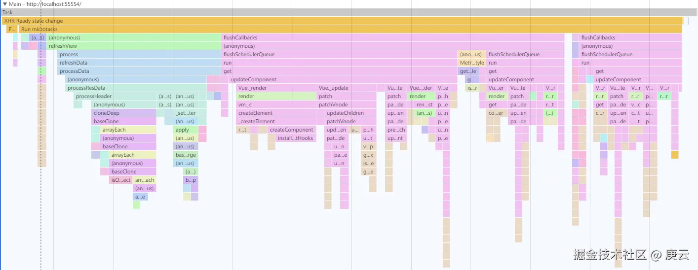 火焰图,主要在 Main 面板中,是我们分析具体函数耗时最常看的面板,我们来看一下,如图: