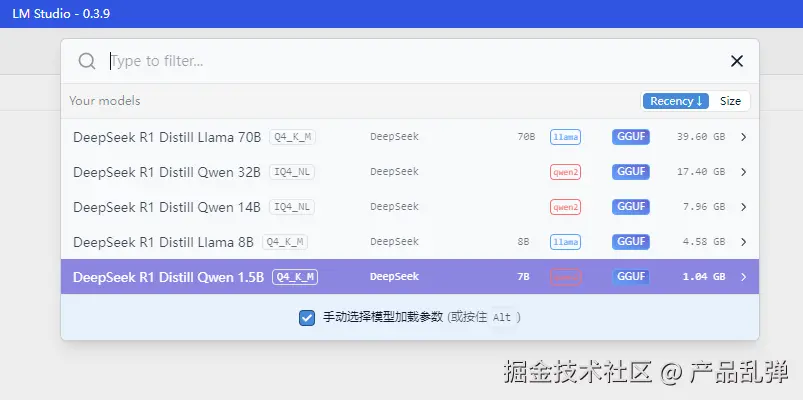 选择要加载的模型(见第一部分第4节)