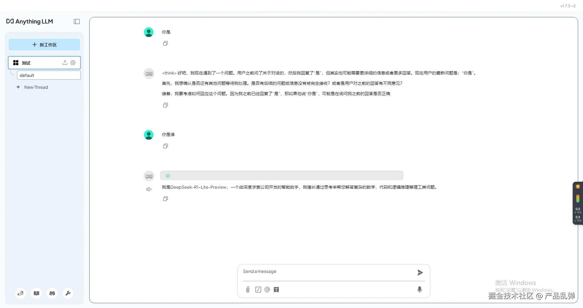 | 也可以用刚刚下载的AnythingLLM实现,但个人认为单纯用作聊天的话,Chatbox的体验更佳! |