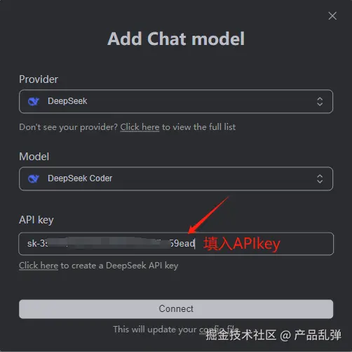 点击connect后还会出现一个小的输入框,再次输入APIkey即可。