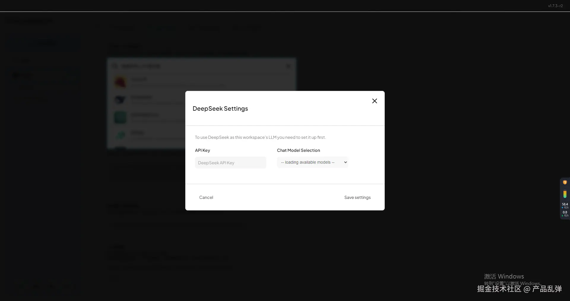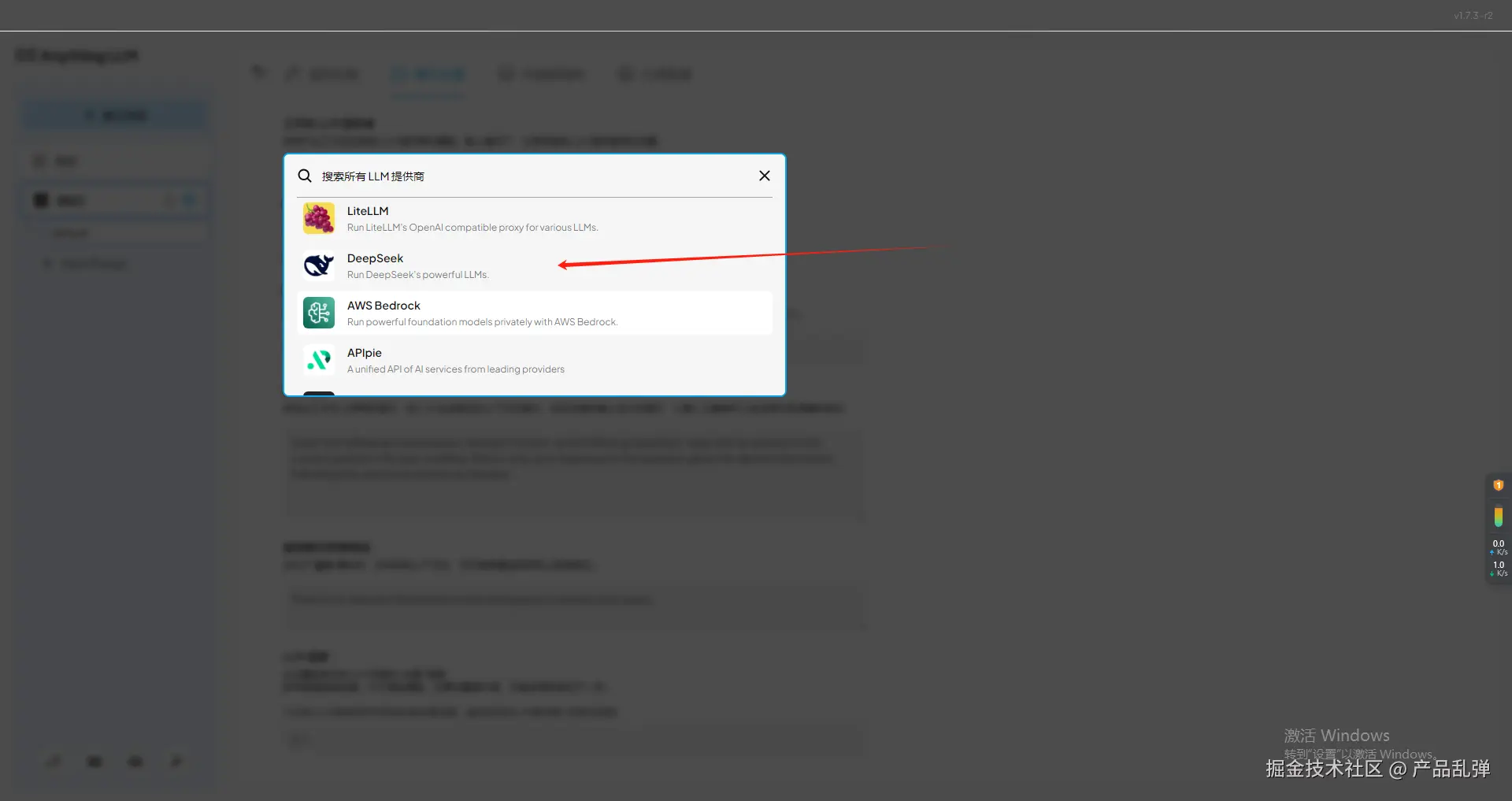 新建工作区,进入设置,选择其他LLM提供商,以deep seek为例