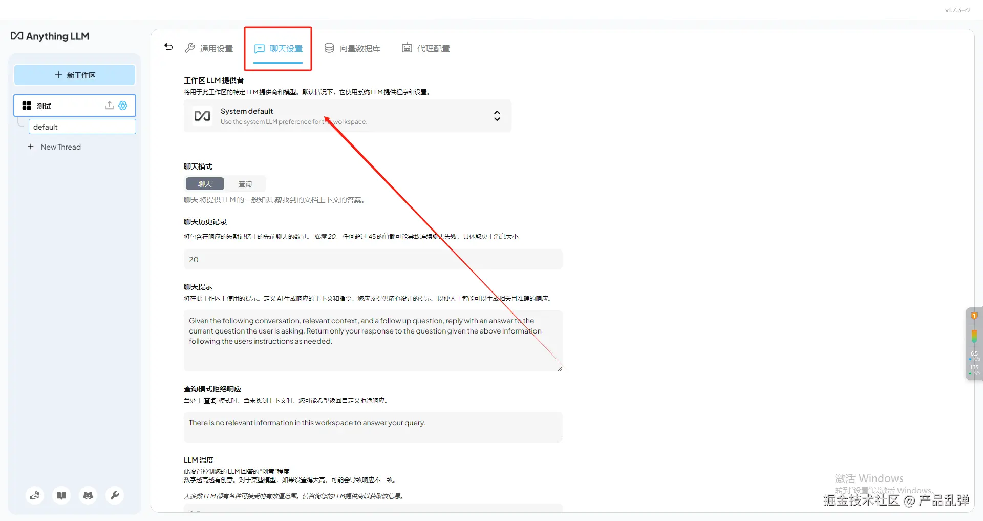 进入聊天设置,切换LLM供应商