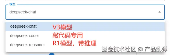 然后选择模型,默认的是普通的chat聊天模型,想要带推理的选择reasoner(但是这个模型最近太火爆了,经常无响应)