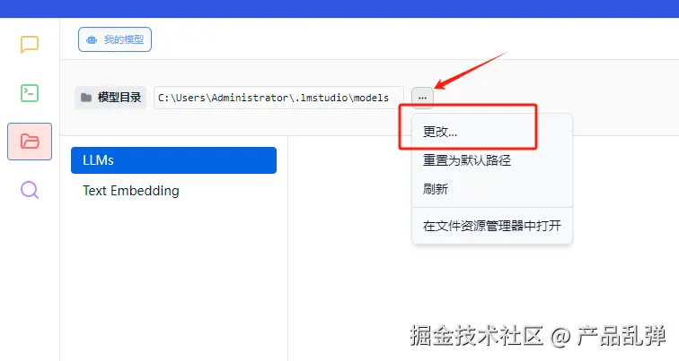 打开LM Studio,进入文件页面,更改模型目录