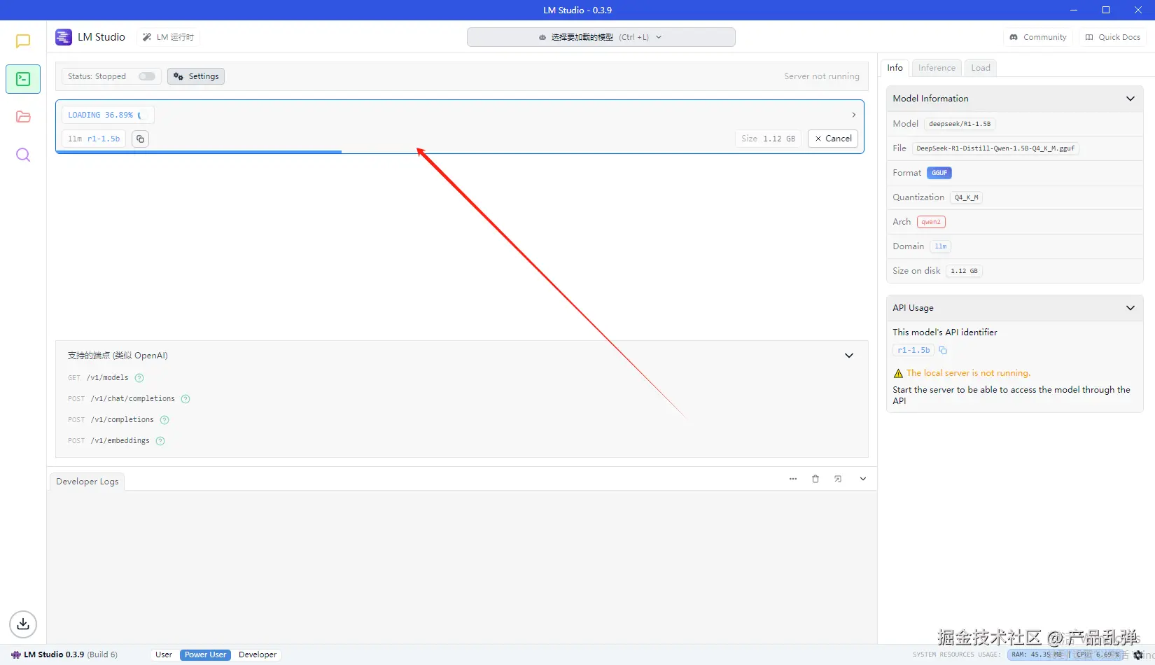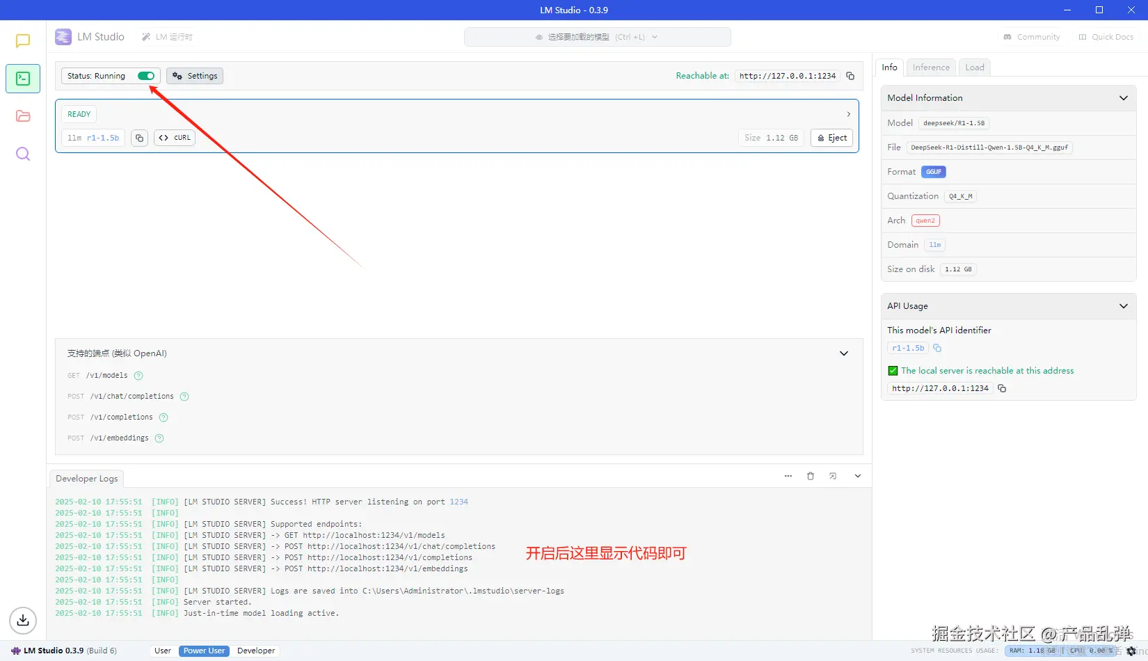 2.切换到LM Studio,打开本地服务