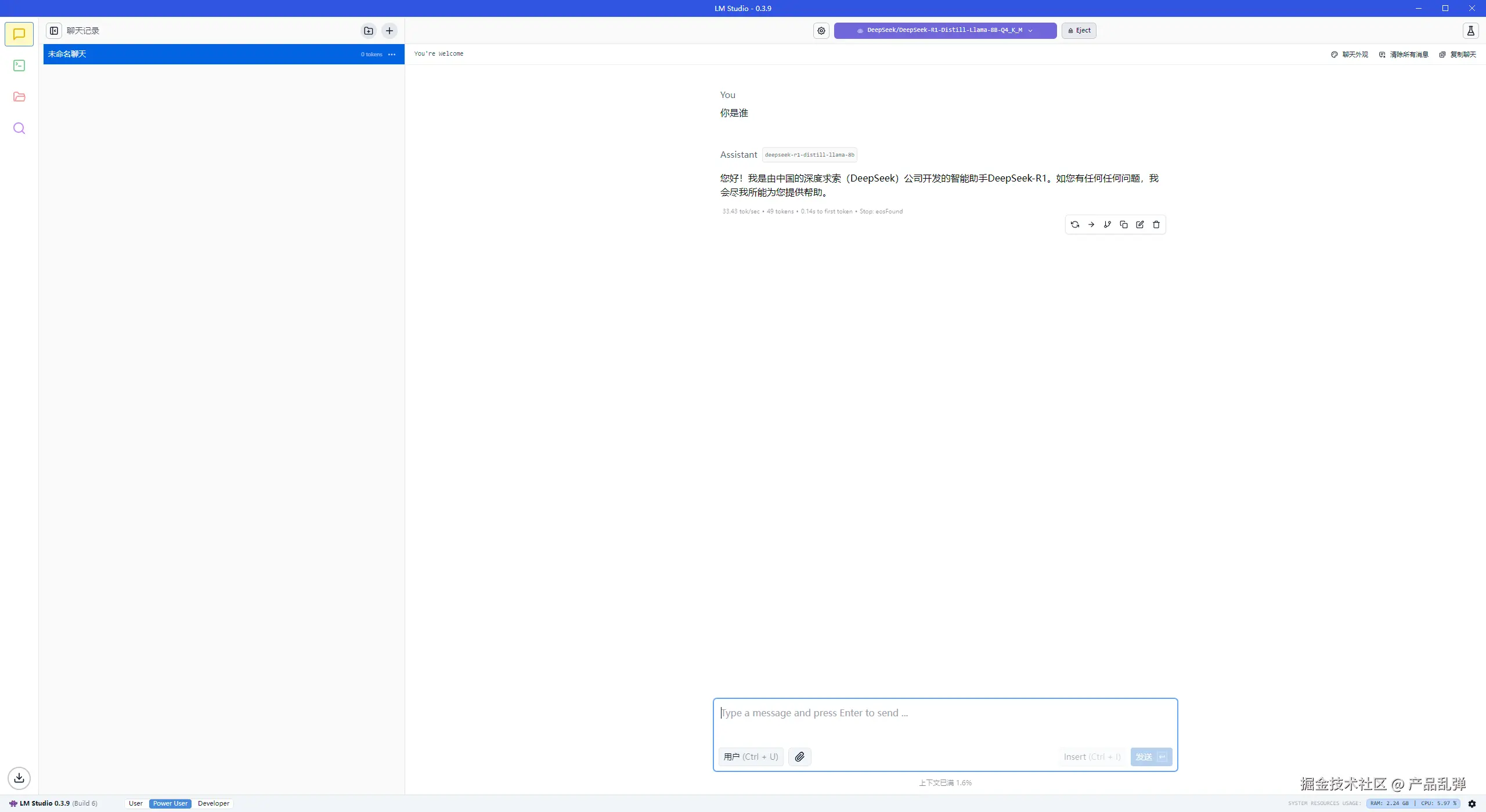 返回对话页,这样就建立了与LMstudio的本地连接
