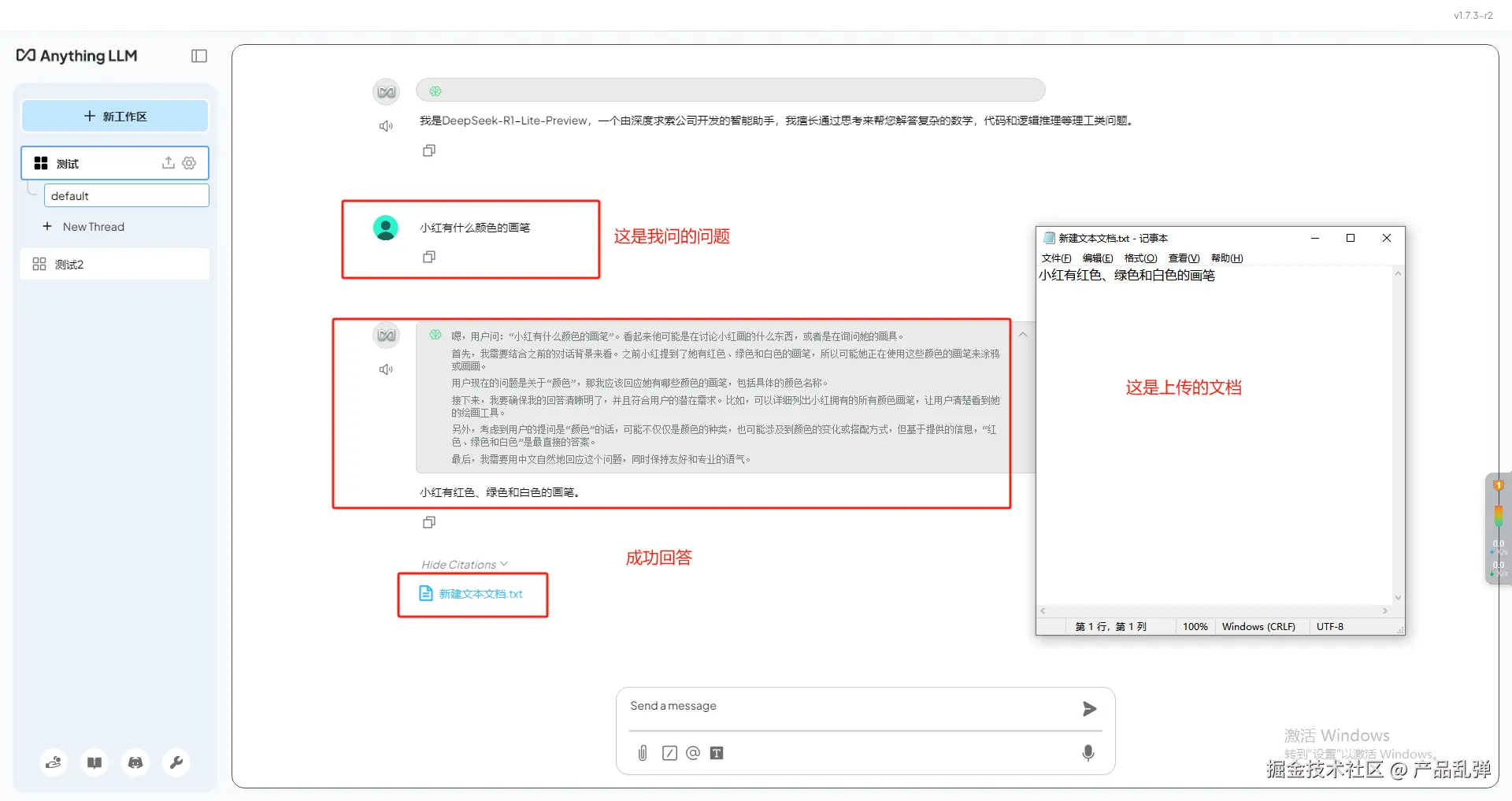 | 本地知识库:使用lmstudio上的本地模型创建的知识库 若不放心安全问题,在配置完成后,可参照一.5关闭anythingLLM联网 |