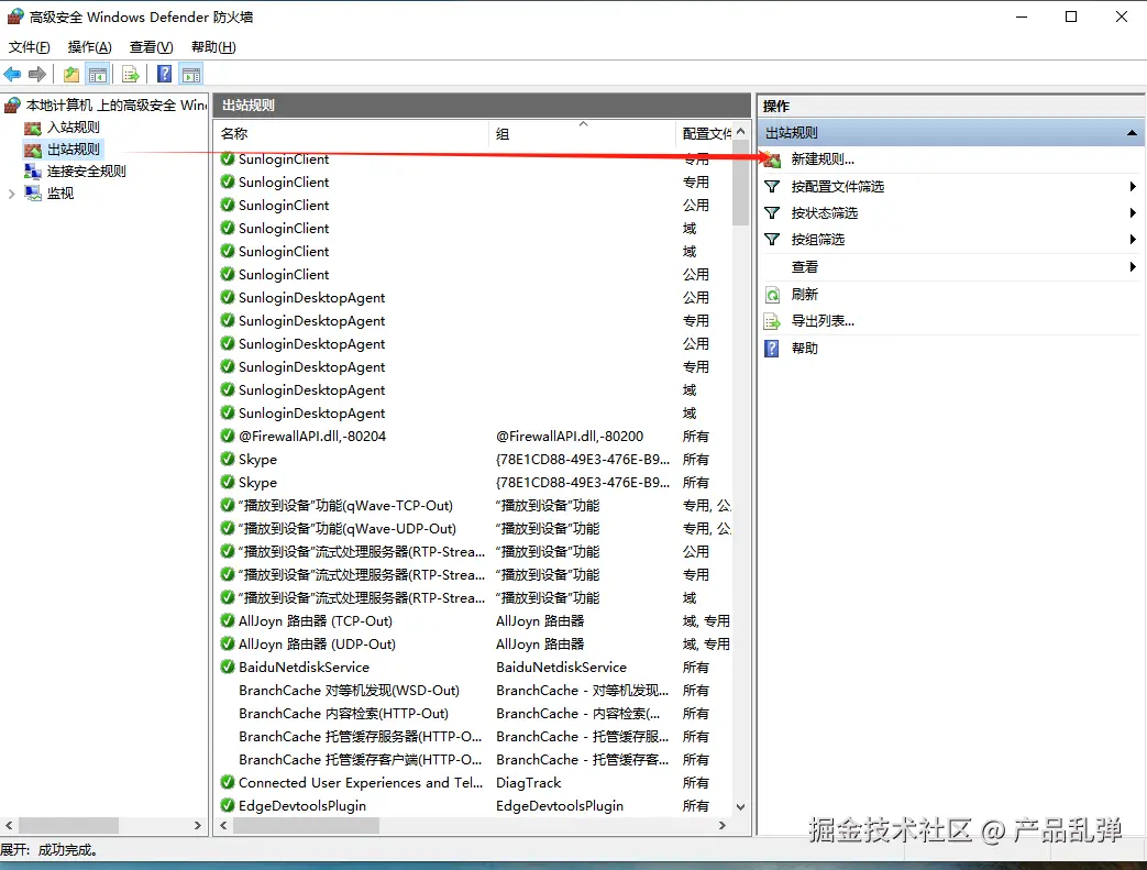 在出站规则中也将以上三个文件设置禁止联网,步骤同上