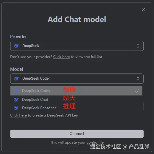 在选择AI模型提供方界面找到deep seekAPI