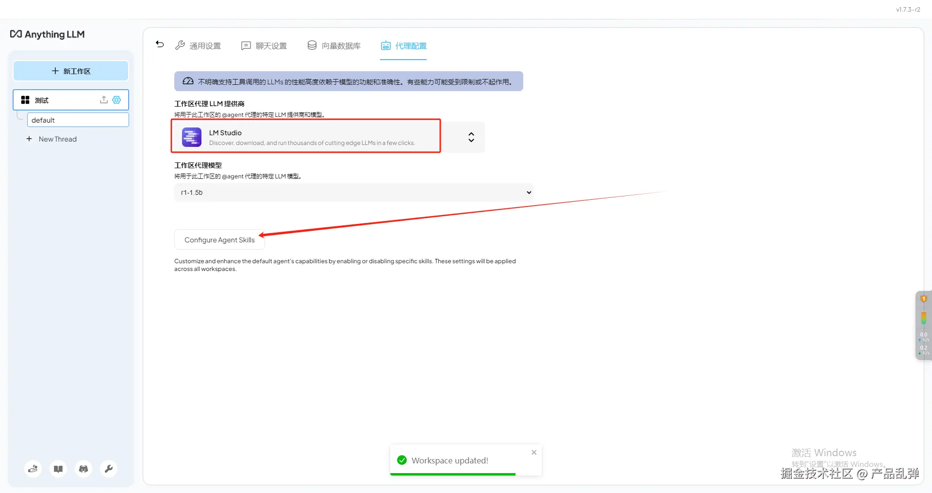 在代理配置中也选上LM Studio(注意要点击configure进行保存)