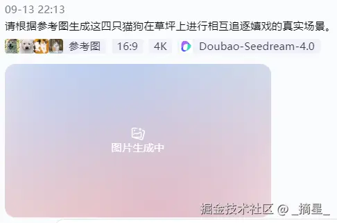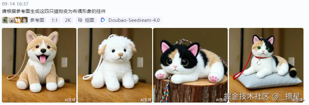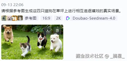 作为一名长期关注AI技术发展的开发者,我见证了从GAN到DALL-E,再到Stable Diffusion的图像生成技术演进历程。而今天,当我深入体验字节跳动最新发布的豆包Seedream 4.0时,我被这项技术的突破性表现深深震撼了。这不仅仅是一次简单的版本迭代,而是AI绘画领域的一次革命性跃进。通过我使用中华田园犬和三花猫素材进行的深度测评,Seedream 4.0展现出了前所未有的多图融合能力和主体一致性保持水平。从真实场景的动物追逐图,到充满想象力的卡通探险绘本,再到创意十足的布偶挂件设计,每一个生成结果都让我感受到了AI创作的无限可能。这款模型不仅在技术指标上实现了质的飞跃,更在实际应用场景中展现出了强大的商业化潜力。