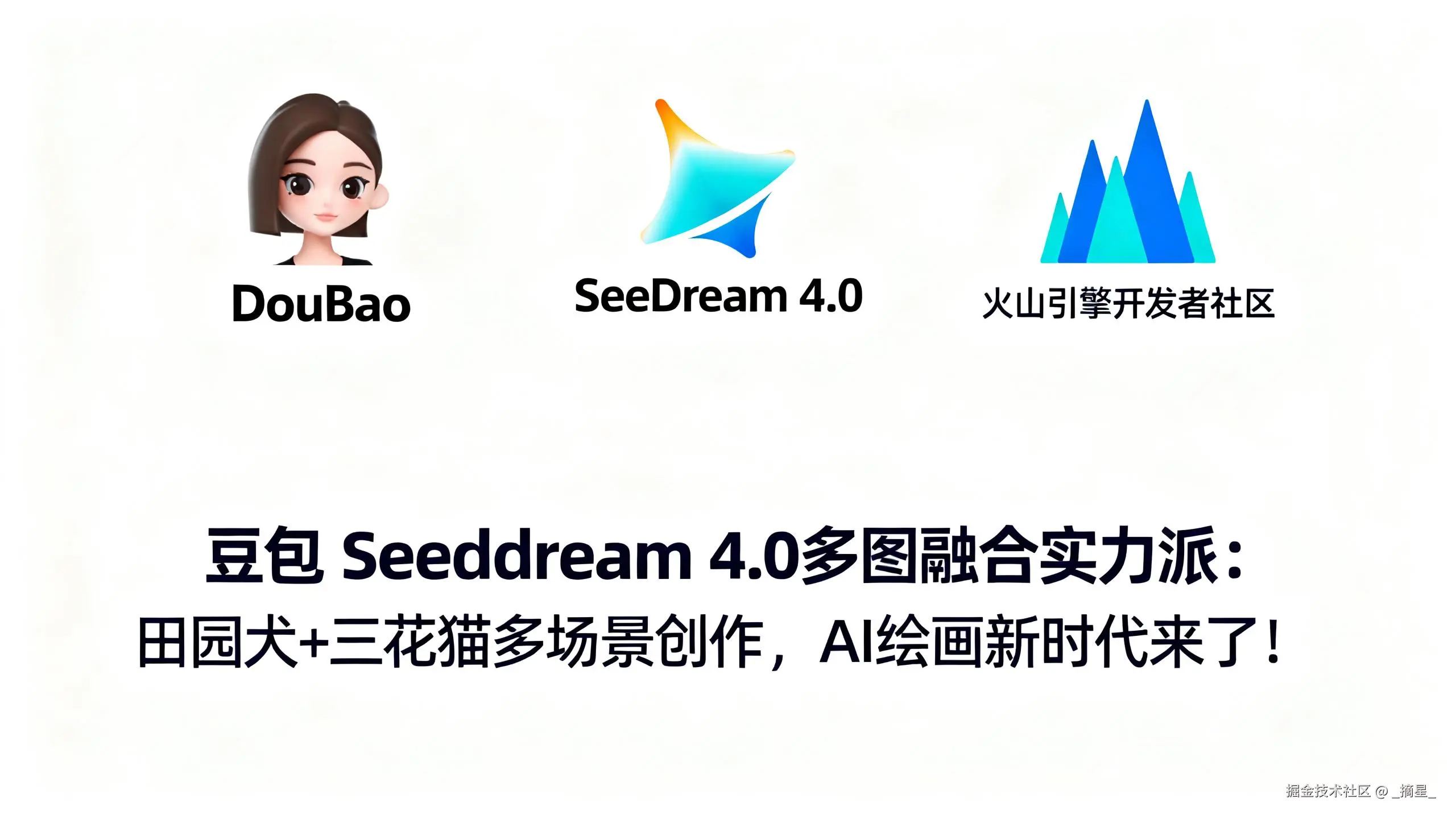 豆包Seedream 4.0多图融合实力派:田园犬+三花猫多场景创作,AI绘画新时代来了!