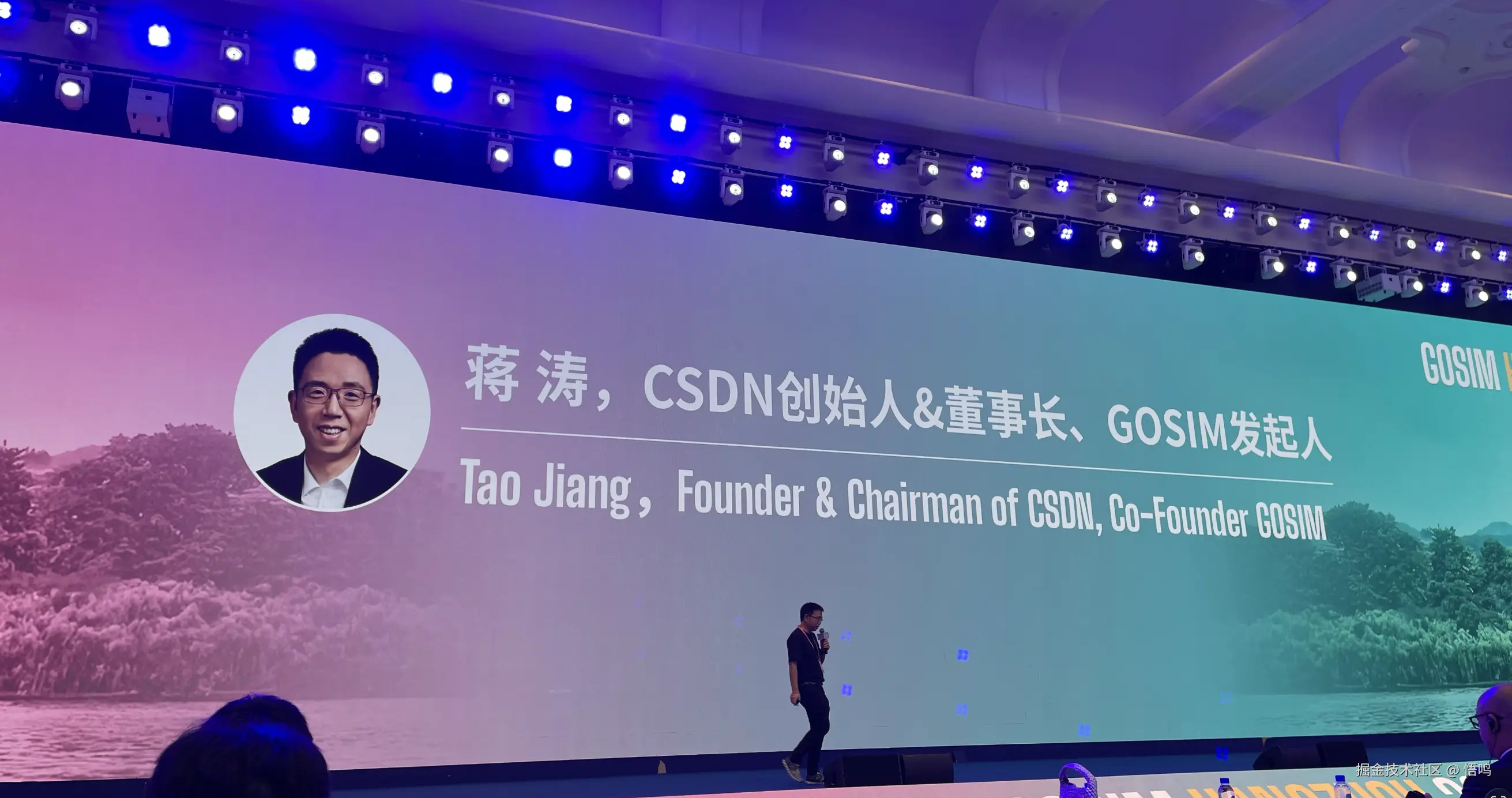 也非常荣幸地和 CSDN 创始人&董事长、GOSIM 发起人姜总开场讲 “AGI 时代的开源生态”合了一张影(照片略,哈哈)。