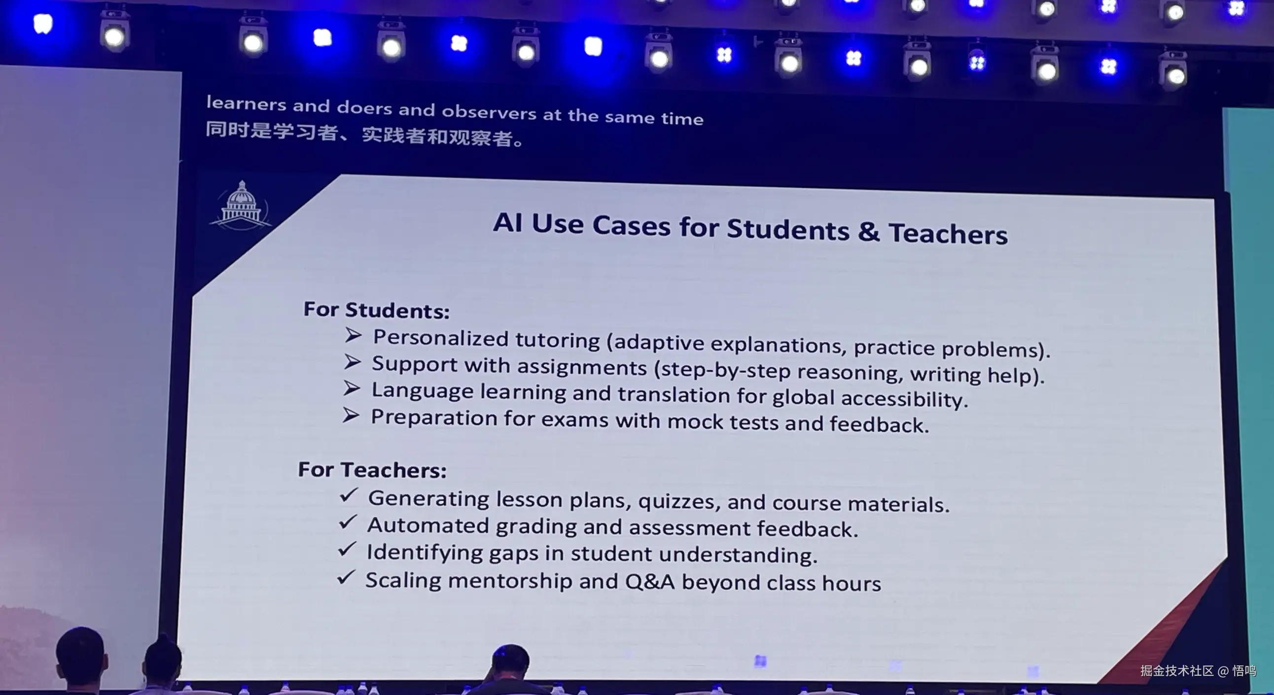 对于老师,生成教学内容、自动评分和反馈、发现学生的薄弱环节、扩大导师制和答疑服务等。