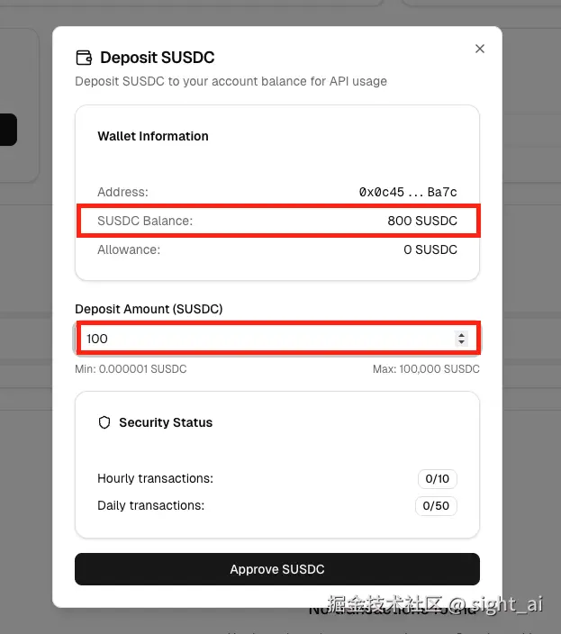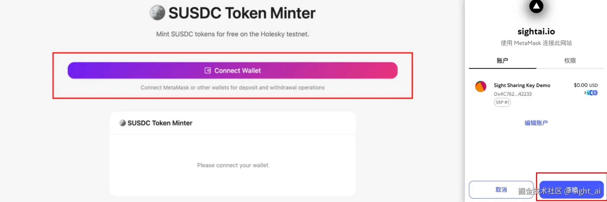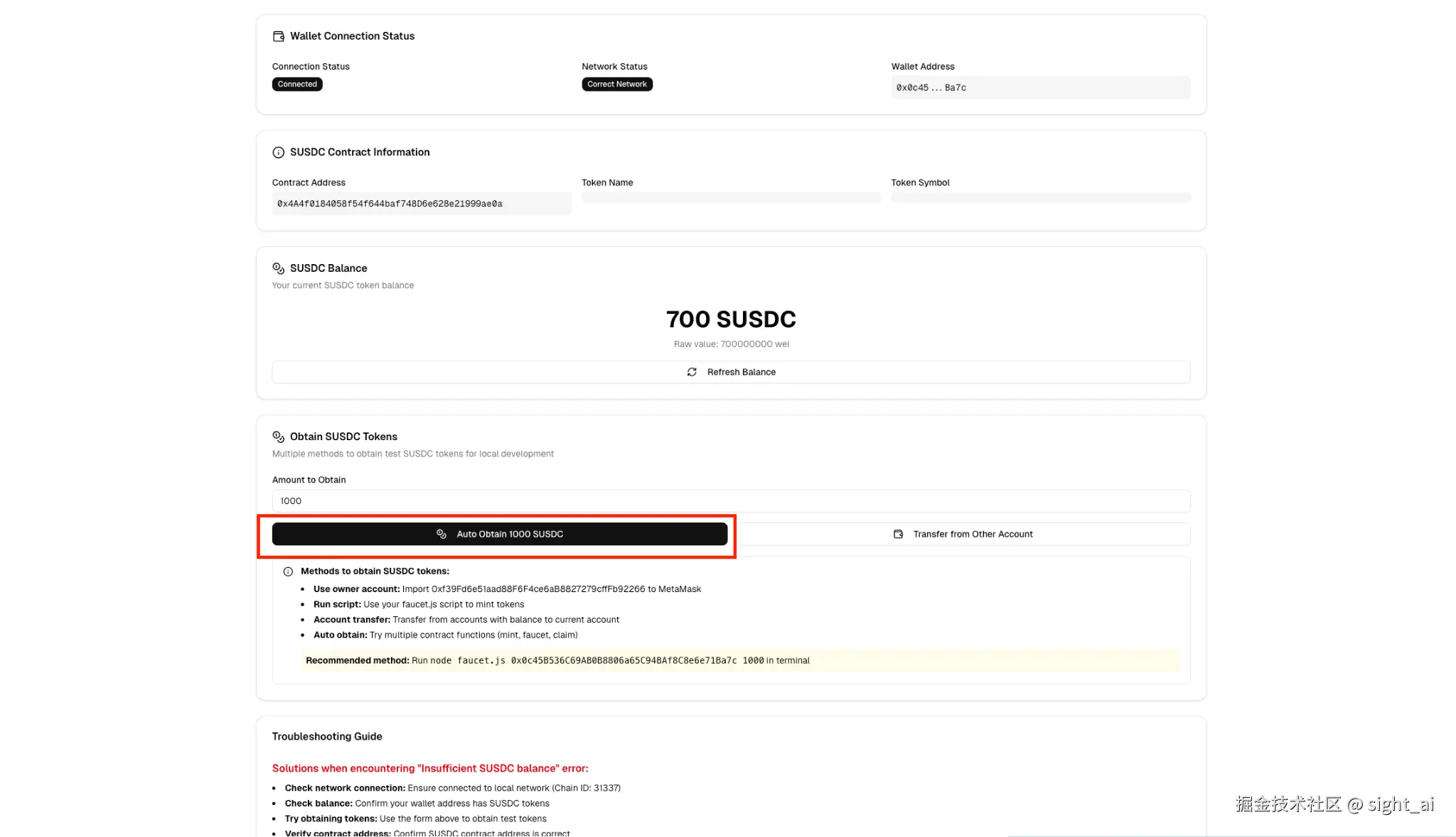 - 点击 “Auto Obtain 1000 USDC” (铸造 1000 USDC)
