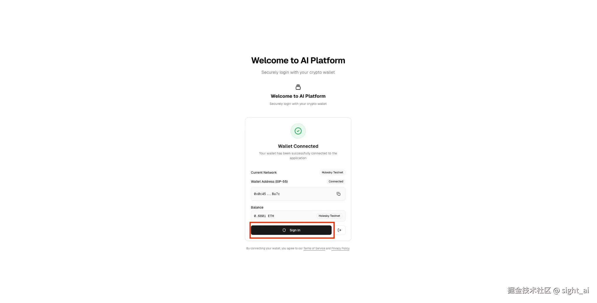 - 连接后,点击“Sign in”按钮,完成钱包确认