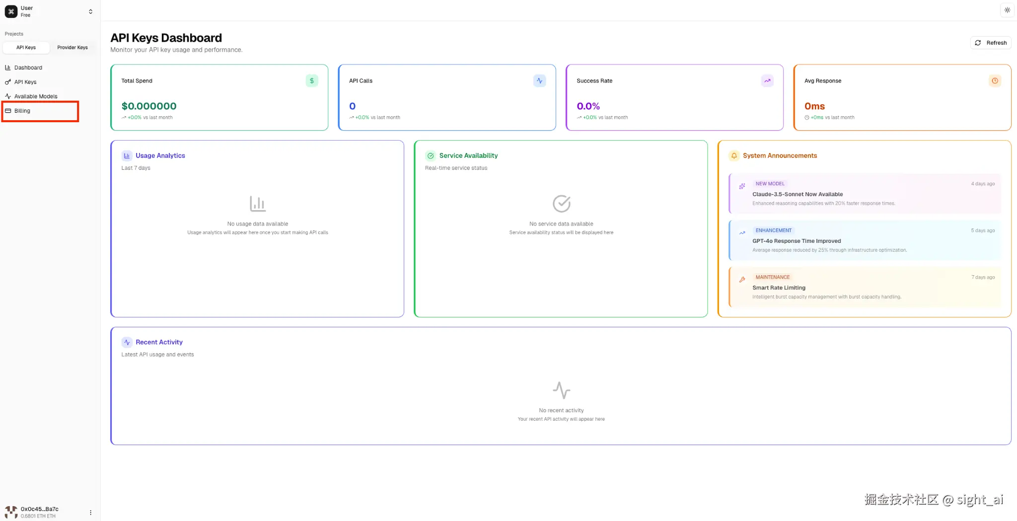 在 AI 开发领域,“快速落地” 是开发者永恒的需求 —— 无论是个人创作者测试多模型能力,还是企业团队搭建生产级 AI 应用,“低门槛接入” 与 “高稳定性调用” 缺一不可。那么你是否曾在项目中为了同时调用GPT-4、Claude和DeepSeek而疲于奔命?是否曾因为某个主流AI厂商的API突然涨价、限流或服务不稳定而被迫深夜改代码?在多模型并存的今天,开发者们渴望一个简单、统一且可靠的解决方案。今天,我们将介绍一个能彻底改变你工作流的工具:Sight AI。只需5分钟,你就能用一个兼容OpenAI的API,轻松调用全球主流AI模型。