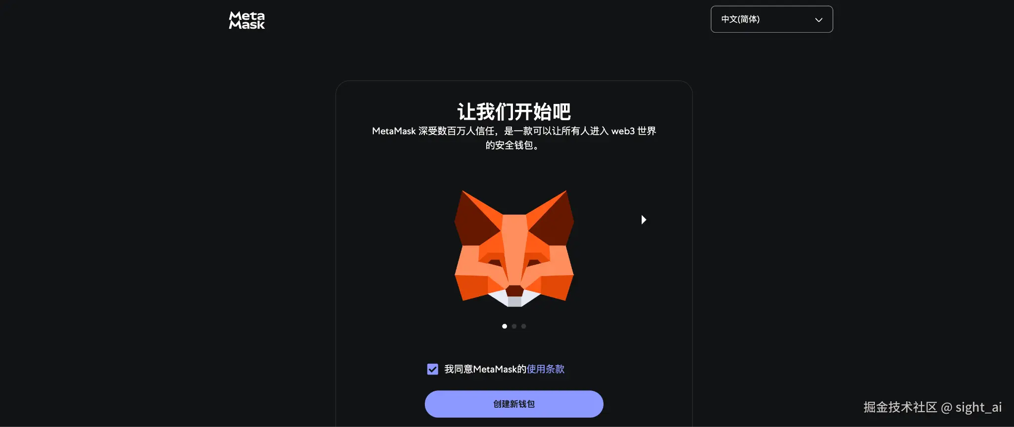 - 点击右上角 “Get MetaMask” (获取 MetaMask)