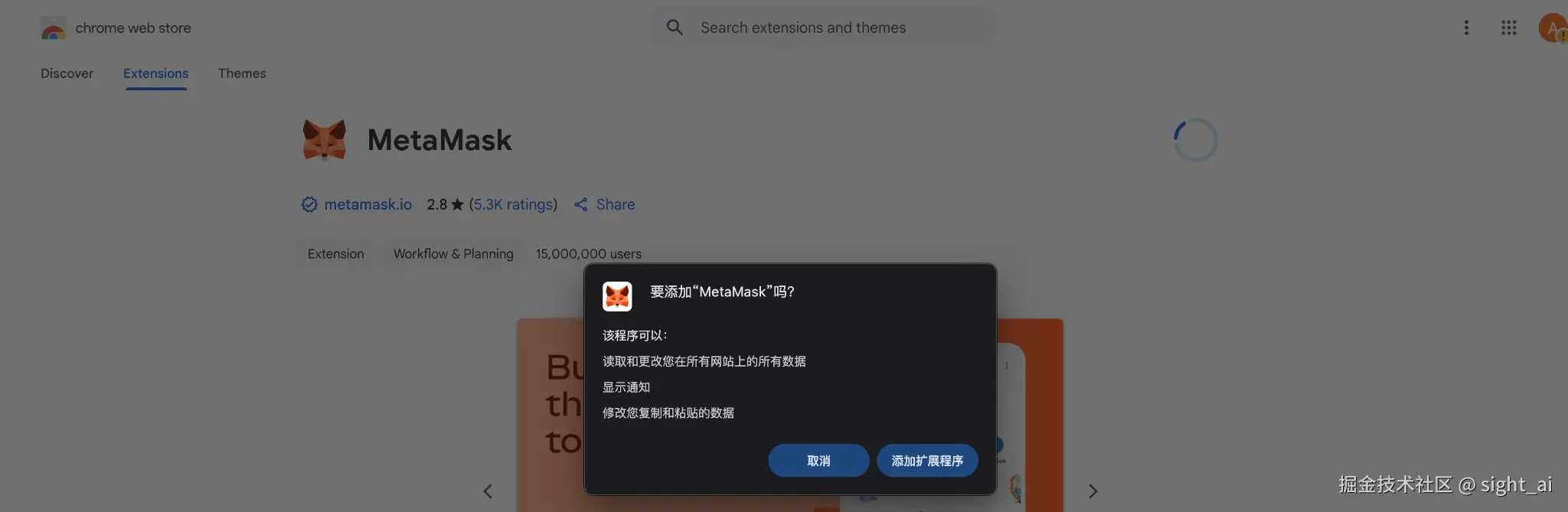 - 在弹窗中确认,点击 “Add extension” (添加扩展程序)