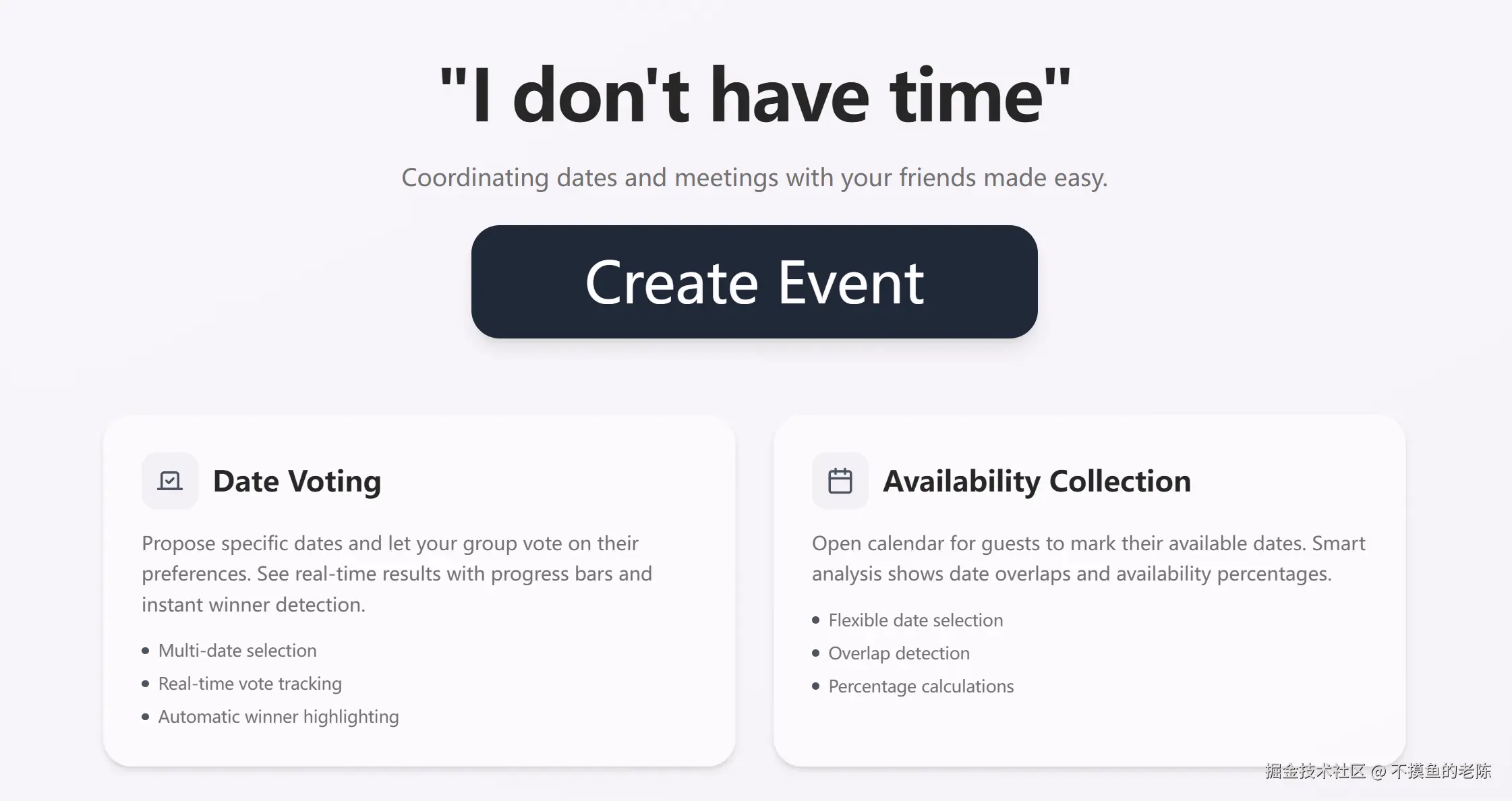 Idonthavetime 是一款日程安排工具,通过实时显示朋友们的空闲时间,简化选择聚会日期的过程。