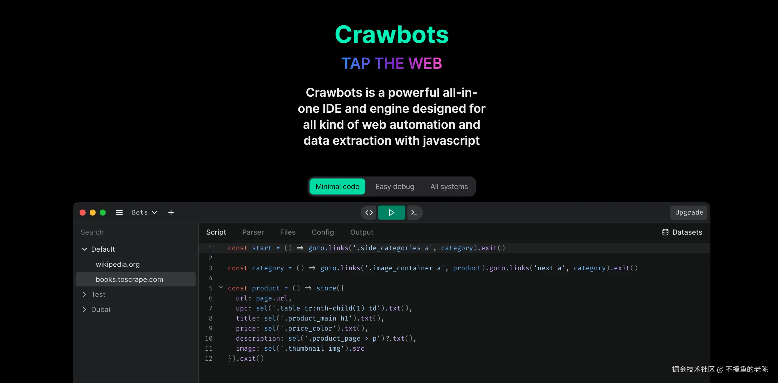 Crawbots是一款桌面应用程序,提供了一个集成开发环境,简化使用Puppeteer、Playwright或Selenium进行Web数据提取的过程,旨在让初学者也能轻松上手。