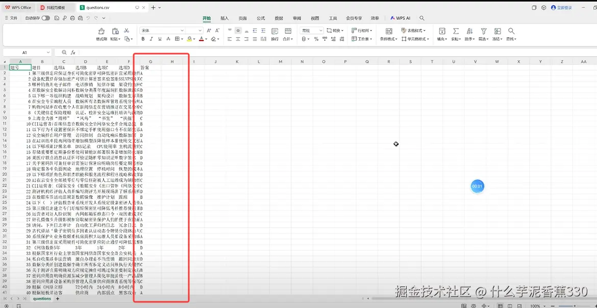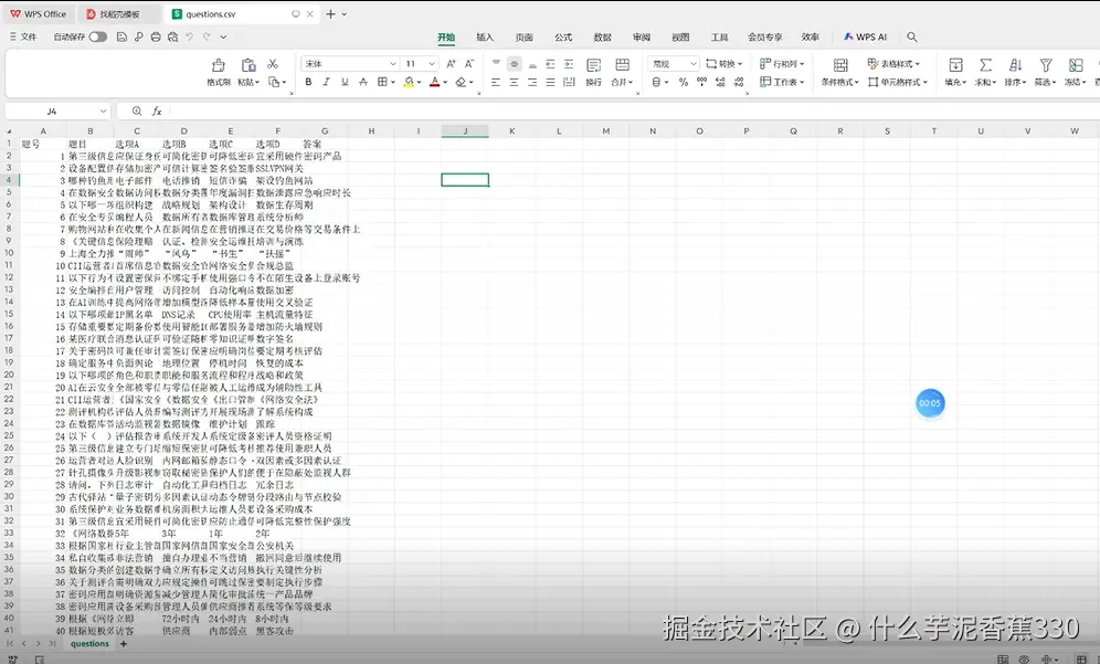 提示词:回答桌面questions.csv,把选项填充至答案一列