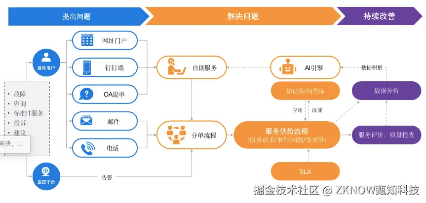 通过数字化工具支撑IT服务全流程,实现工单、知识、数据的联动,降低运维人员重复劳动,提升服务效率。