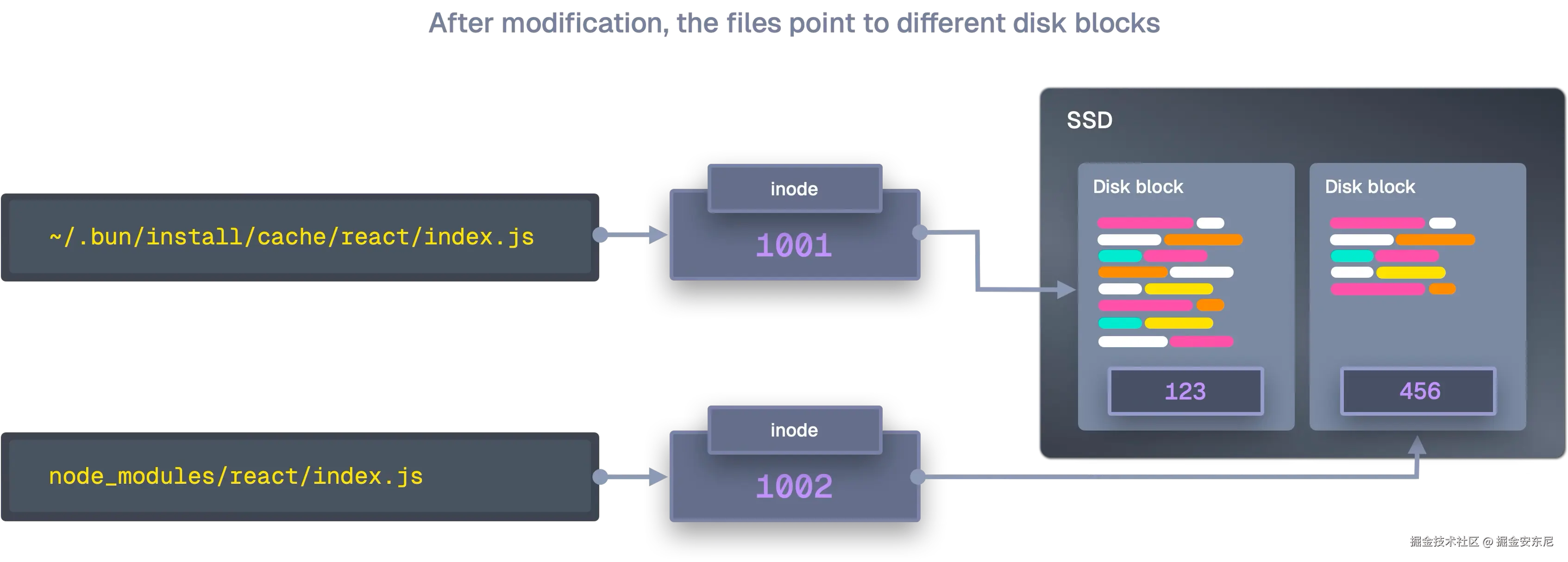 Bun 使用苹果的 clonefile()(写时复制)系统调用。