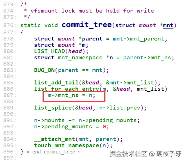 现在只差最后一步,这次挂载与进程的命名空间建立联系,这次挂载就算完成了,核心代码在