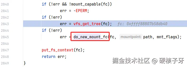 2、完成第一个阶段,会回到函数do_new_mount,执行do_new_mount_fc