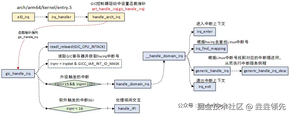 el0_irq处,EL1则跳转到el1_irq处; - 在GIC驱动中,会调用